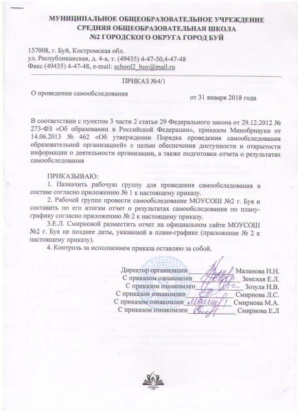 Отчет о результатах самообследования МОУСОШ №2 г. Буя 2020 г. (скачать) (посмотреть)